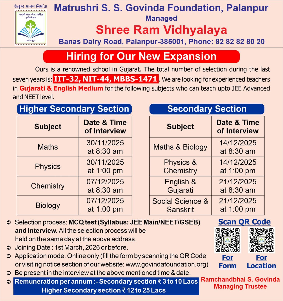Shree Ram Vidhyalaya is dedicated to nurturing students with a holistic approach to education. Our focus is on academic excellence, character building, and fostering creativity. With experienced faculty and modern infrastructure, we create a supportive learning environment. Join us to lay the foundation for your child's successful and meaningful future.